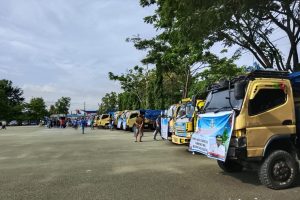 Pendistribusian bahan natura tersebut diawali dengan apel bersama guna mengecek petugas pengamanan, transportasi, pendamping, dan pejabat yang akan terlibat dalam proses pendistribusian.