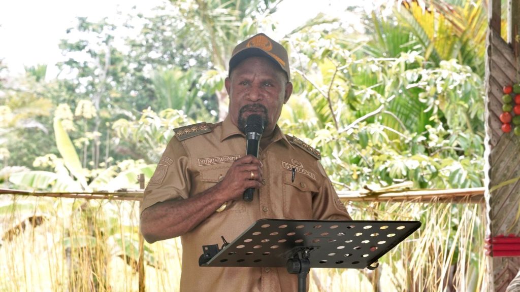SENTANI, jayapurakab.go.id – Bupati Jayapura, Dr. Yunus Wonda, S.H., M.H., Saat menghadiri sekaligus membuka kegiatan pencanangan dan penanaman 1.000 pohon sagu yang dilaksanakan oleh Persekutuan Kaum Bapak (PKB) GKI Klasis Sentani, Senin, 30 Maret 2026.