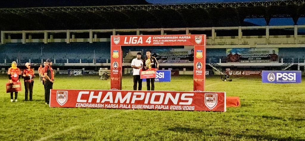 SENTANI, jayapurakab.go.id – Bupati Jayapura, Dr. Yunus Wonda, S.H., M.H., menghadiri penutupan Turnamen Liga 4 Piala Gubernur Papua di Stadion Barnabas Youwe.