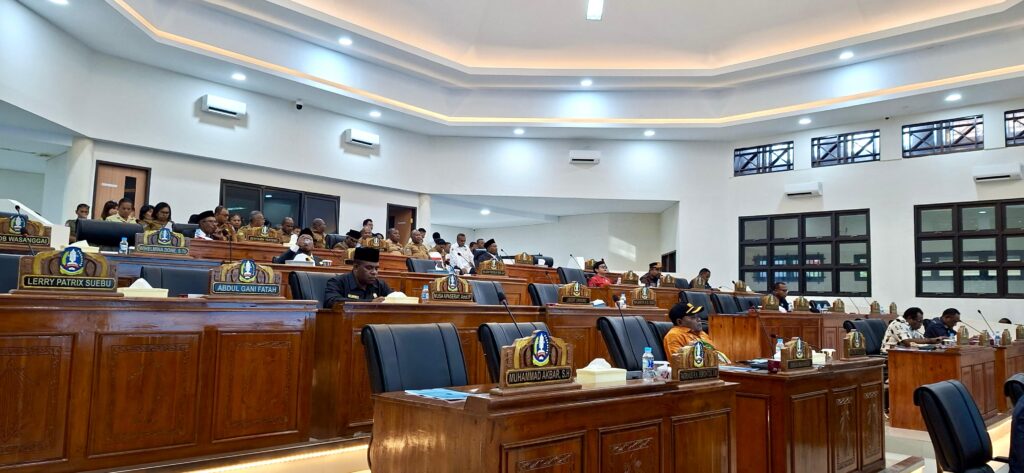 SENTANI, jayapurakab.go.id – Dewan Perwakailan Rakyat (DPRK) Jayapura menggelar rapat paripurna III masa sidang II tentang Jawaban Bupati atas Laporan Badan Anggaran (Banggar) DPRK terkait hasil evaluasi dan analisis, serta rekomendasi terhadap Laporan Keuangan Pemerintah Daerah (LKPD) dan Raperda Pertanggungjawaban Pelaksanaan APBD Kabupaten Jayapura tahun anggaran (TA) 2024, yang berlangsung di Ruang Sidang Gedung DPRK Jayapura, Selasa, 12/98/2025.