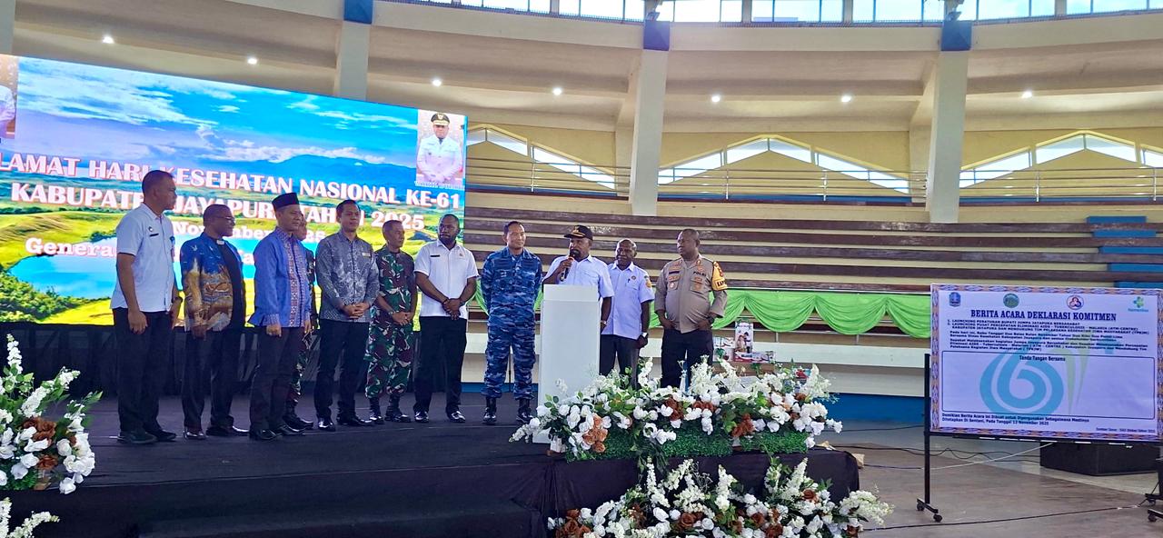 SENTANI, jayapurakab.go.id – Dalam rangka memperingati Hari Kesehatan Nasional (HKN) ke-61, Bupati Jayapura, Dr. Yunus Wonda, S.H., M.H., secara resmi meluncurkan empat program unggulan inovatif bidang kesehatan. Peluncuran ini menjadi agenda puncak Rapat Kerja Kesehatan Daerah (Rakerkesda) yang berlangsung di GOR Toware, Distrik Waibu, Rabu (12/11/2025).