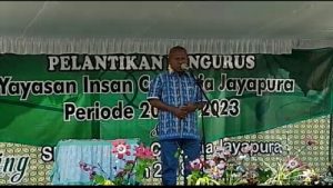 Bupati Jayapura, Mathius Awoitauw, SE., M.Si dalam sambutannya menyampaikan selamat kepada pengurus Yayasan Cendekian yang baru saja dikukuhkan dan selamat bekerja.