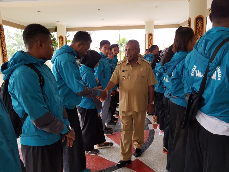 Sentani, Jpr – Bupati Kabupaten Jayapura, MathiusAwoitauw, SE, M. Si, melepas 23 atlit pencak silat daerah setempat, untuk berlaga pada kejuaraan daerah Pencak Silat se-Provinsi Papua yang dilaksanakan di Kota Jayapura bertempat di GOR Waringin, pada tanggal 21-23 Maret 2018.