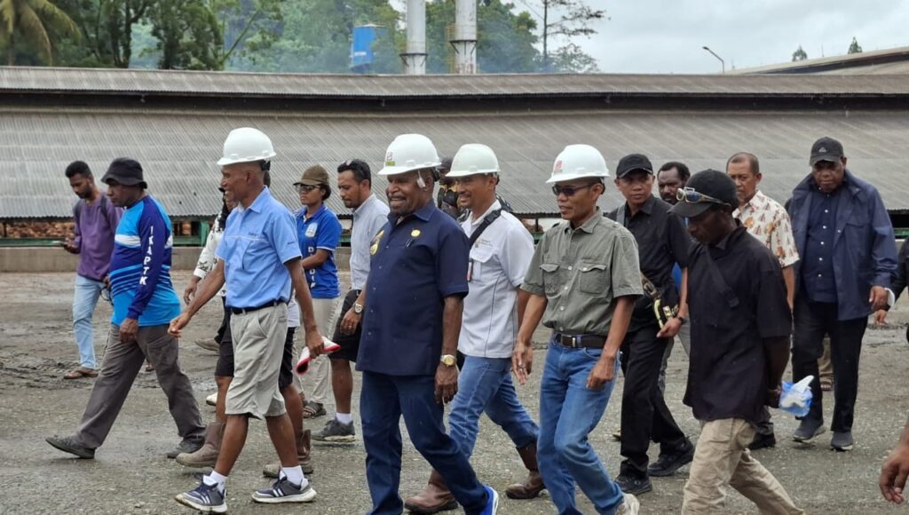Bupati Jayapura Jayapura Ketika meninjau aktivitas pabrik pengolahan kelapa sawit milik PT Sinar Kencana Inti Perkasa, yang beroperasi di kawasan tersebut. Dalam peniinjauan Lokasi, Bupati menyampaikan pesan kepada pihak perusahaan agar turut memperhatikan kesejahteraan masyarakat, terutama di sektor pendidikan dan kesehatan.