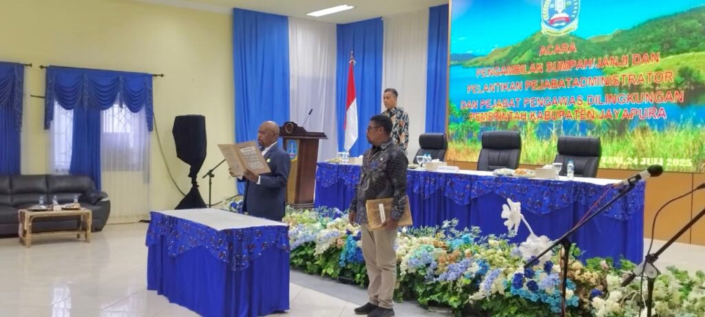 Pelantikan terlaksana sesuai SK Bupati Jayapura nomor 800.1.3.3 – 75 tanggal 23 Juli 2025 tentang pengangkatan dan pemberhentian pejabat administrator dan pejabat pengawas di lingkungan Pemerintah Kabupaten Jayapura. Dari 63 pejabat yang dilantik terdiri dari 16 pejabat Eselon III dan sisanya adalah pejabat Eselon IV.