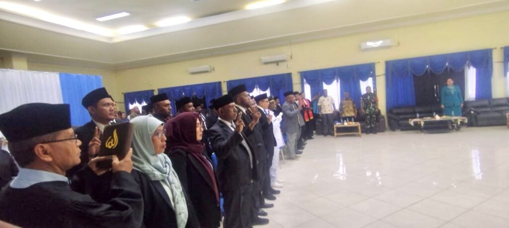 SENTANI, jayapurakab.go.id – “Bekerjalah sesuai dengan Visi Misi Pemerintah Kabupaten Jayapura”, merupakan sebuah kalimat penegasan yang disampaikan Bupati Jayapura, Dr. Yunus Wonda, S.H., M.H., dalam sambutannya usai melantik dan mengambil sumpah/janji jabatan 63 pejabat eselon III dan IV, berlangsung di Aula Lt. II Kantor Bupati Jayapura, Kamis, 24/07/ 2025.
