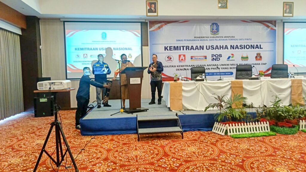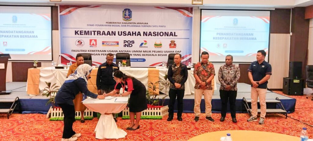 DPM PTSP Kabupaten Jayapura Jalin MoU dengan kemitraan usaha nasional, Alex Rumbobiar menyebutkan, beberapa kemitraan usaha nasional yang ada di Kabupaten Jayapura seperti, Saga, Alfamidi, dan Indomart. Itukan kita sudah MoU dengan mereka sehingga wajib memberikan ruang di setiap kemitraan tersebut akan ditampung hasil UMKM lokal dan itu sudah termuat dalam MoU di dalam rekomendasi yang diberikan oleh Bupati.