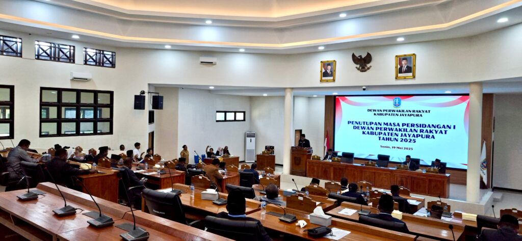 SENTANI, jayapurakab.go.id – Dewan Perwakilan Rakyat Kabupaten (DPRK) Jayapura menggelar Rapat Paripurna penutupan masa persidangan satu dan pembukaan masa persidangan dua tahun 2025, dipimpin Ketua DPRK Jayapura Ruddy Bukanaung, di ruang sidang DPRK Jayapura, Senin, 19/05/2025.