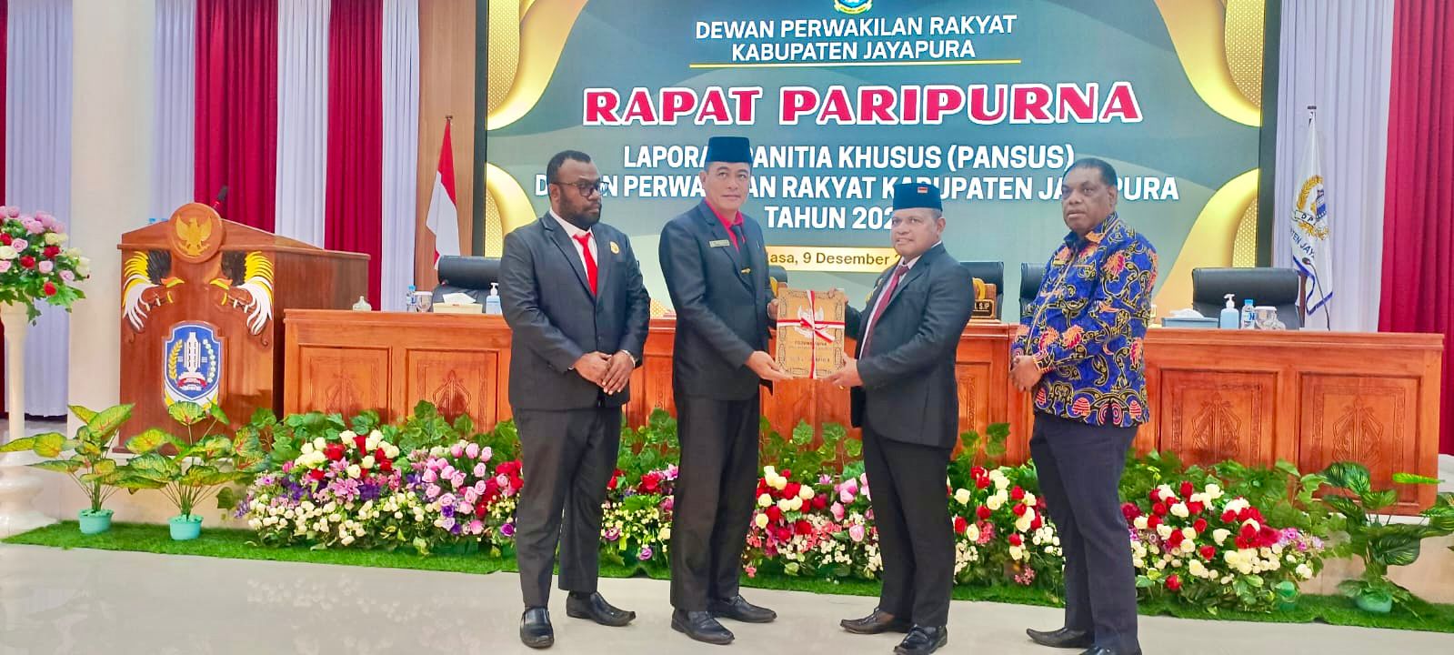 SENTANI, jayapurakab.go.id – Pemerintah Kabupaten Jayapura, melalui Wakil Bupati Haris Richard Yocku, S.H., menerima laporan dan rekomendasi strategis dari dua Panitia Khusus (Pansus) Dewan Perwakilan Rakyat Kabupaten (DPRK) Jayapura dalam Rapat Paripurna, Selasa (9/12/2025). Kedua laporan itu dinilai krusial untuk meningkatkan Pendapatan Asli Daerah (PAD) dan mengoptimalkan tata kelola perkebunan kelapa sawit.