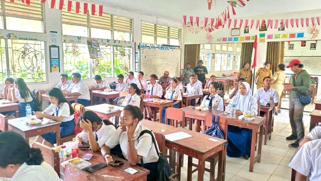 Kegiatan yang kesekian kalinya kini dilaksanakan di SMP Negeri 2 Sentani dengan jumlah siswa yang menerima manfaat dari program MBG sebanyak 1.199 pelajar mencakup kelas VII, VIII dan IX, yang dilaksanakan di SMP N 2 Sentani, Selasa, 22/04/2025.