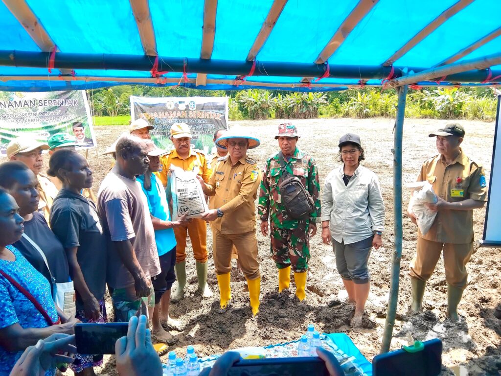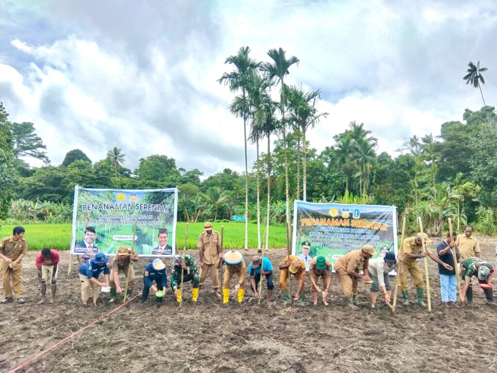 SENTANI, jayapurakab.go.id – Mendukung swasembada pangan serentak, Pemerintah Kabupaten (Pemkab) Jayapura melaksanakan penanaman perdana padi gogo di lahan perkebunan, di Kampung Swentab, Distrik Kemtuk Gresi, Kabupaten Jayapura, Papua. Penanaman perdana padi gogo yang langsung dilakukan oleh Penjabat (Pj) Bupati Jayapura, Dr. Ir. Semuel Siriwa, M.Si., Selasa, 04/02/2025.