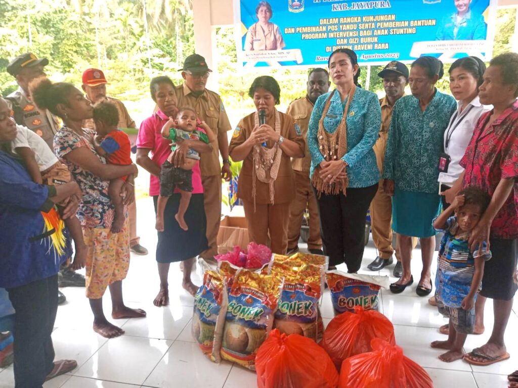 Dalam agenda kunkernya ke Distrik Ravenirara Ny. Sartika Wonda secara langsung menyerahkan 11 paket peningkatan gizi khusus diserahkan untuk balita stunting yang setiap paketnya berisi beras 20 kg, kacang hijau 2 kg, susu kemasan 2 dus, gula 2 kg, garam dapur 1 kg, ikan kemasan 2 kaleng, minyak goreng 4 liter.