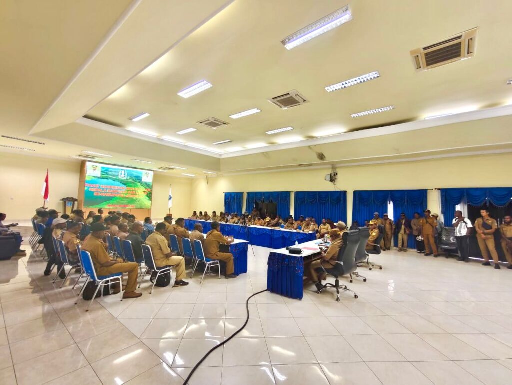 Rapat dipimpin Bupati Jayapura, Dr. Yunus Wonda, S.H., M.H., didampingi Wakil Bupati Jayapura Haris Ricard Yocku, S.H serta Asisten I Bidang Pemerintahan Setda Kabupaten Jayapura, Gilberd Raffles Yakwart, S.STP., M.KP., yang diikuti oleh para lurah dan kepala kampung se-Kabupaten Jayapura.