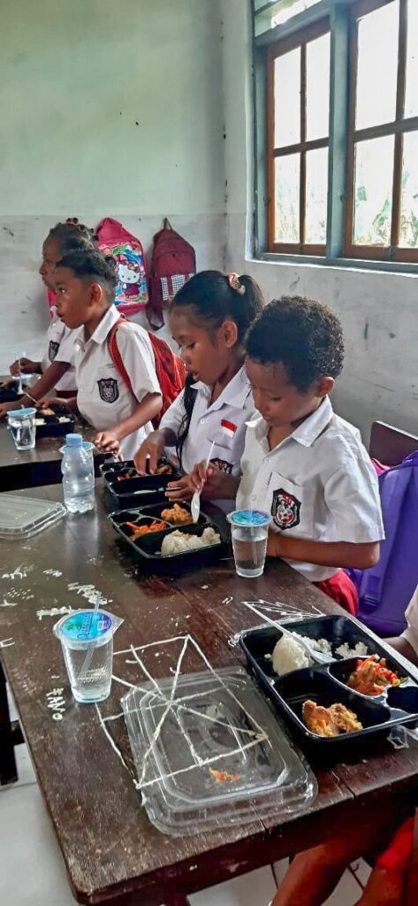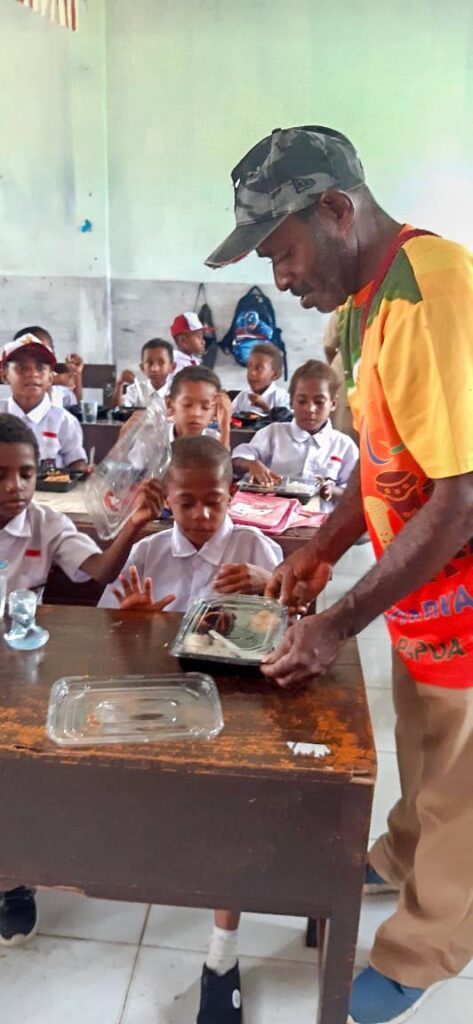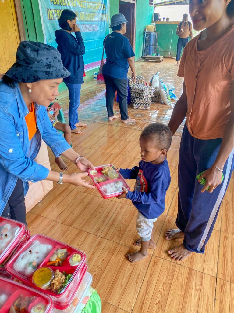 Adapun bantuan makanan yang diberikan, seperti, Beras, Telur, Susu, Kue Sagu, Gula, Kacang Hijau. Pemberian makan itu sudah memenuhi protein.Penyerahan bahan makanan kepada anak-anak dilakukan di rumah Kepala Kampung Mamey.