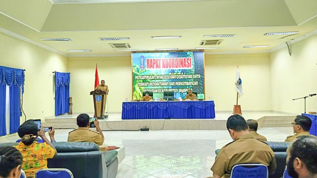 SENTANI, jayapurakab.go.id – Pemerintah Kabupaten Jayapura melalui Dinas Kependudukan dan Catatan Sipil (DUKCAPIL) melakukan rapat koordinasi pengumpulan, analisis, dan diseminasi data terkait pendaftaran dan perkembangan penduduk di Kabupaten Jayapura yang dibuka secara langsung oleh Penjabat (Pj) Bupati Jayapura, Triwarno Purnomo, S.STP., M.Si di Aula II Kantor Bupati Jayapura, Selasa, 11/06/2024.