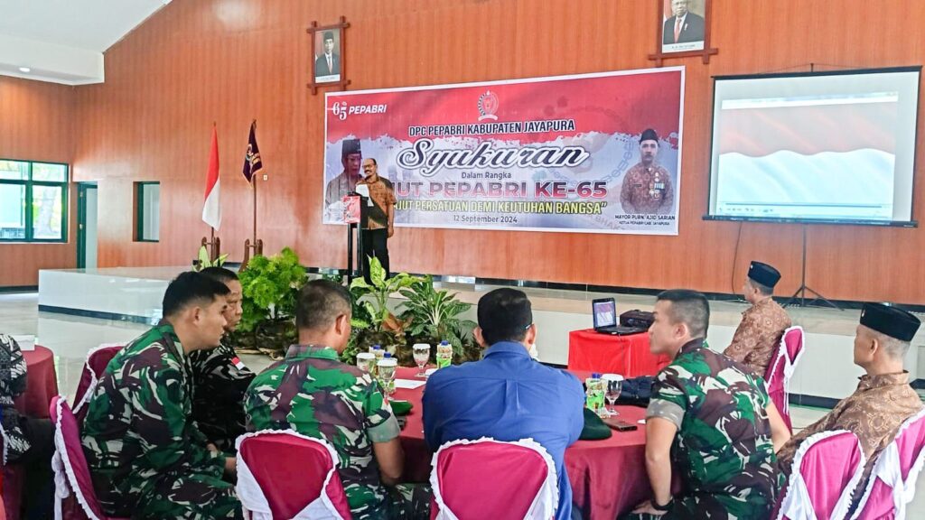 SENTANI, jayapurakab.go.id – Peringati Hari Ulang Tahun (HUT) ke- 65 Persatuan Purnawirawan dan Warakawuri TNI dan Polri (Pepabri), yang digelar di Aula Batalyon Infanteri (Yonif) RK 751/VJS, berlangsung meriah yang dihadiri ratusan Purnawirawan dan Warakawuri TNI dan Polri, Kamis, 12/09/ 2024.