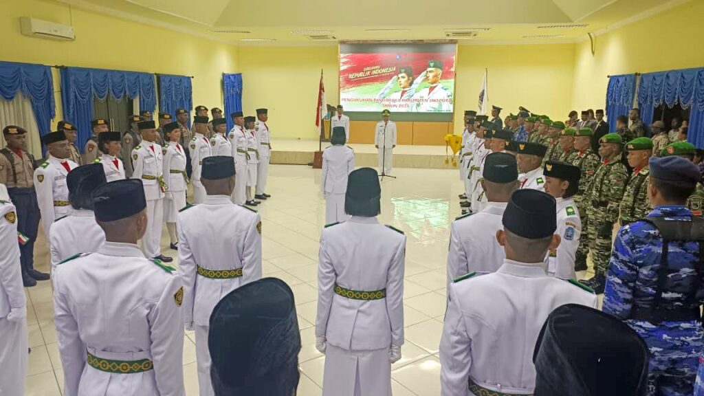 SENTANI, jayapurakab.go.id – Pemerintah Kabupaten Jayapura mengukuhkan 34 anggota pasukan pengibar bendera (Paskibra) yang akan bertugas pada peringatan Hari Kemerdekaan ke- 79 Republik Indonesia, hal itu disampaikan Penjabat (Pj) Bupati Jayapura, Ir. Semuel Siriwa kepada wartawan usai mengukuhkan anggota 34 paskibra di Aula 2 Kantor Bupati Jayapura, Kamis, 15/08/2024.