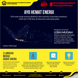 Penyediaan listrik secara merata dengan harga yang terjangkau sangat penting. Namun, melaksanakan penghematan energi juga tidak kalah penting. Di mulai tahun 2016 lalu, Kementerian Energi dan Sumber Daya Mineral (ESDM) menginisisasi gerakan hemat energi “Potong 10%”.