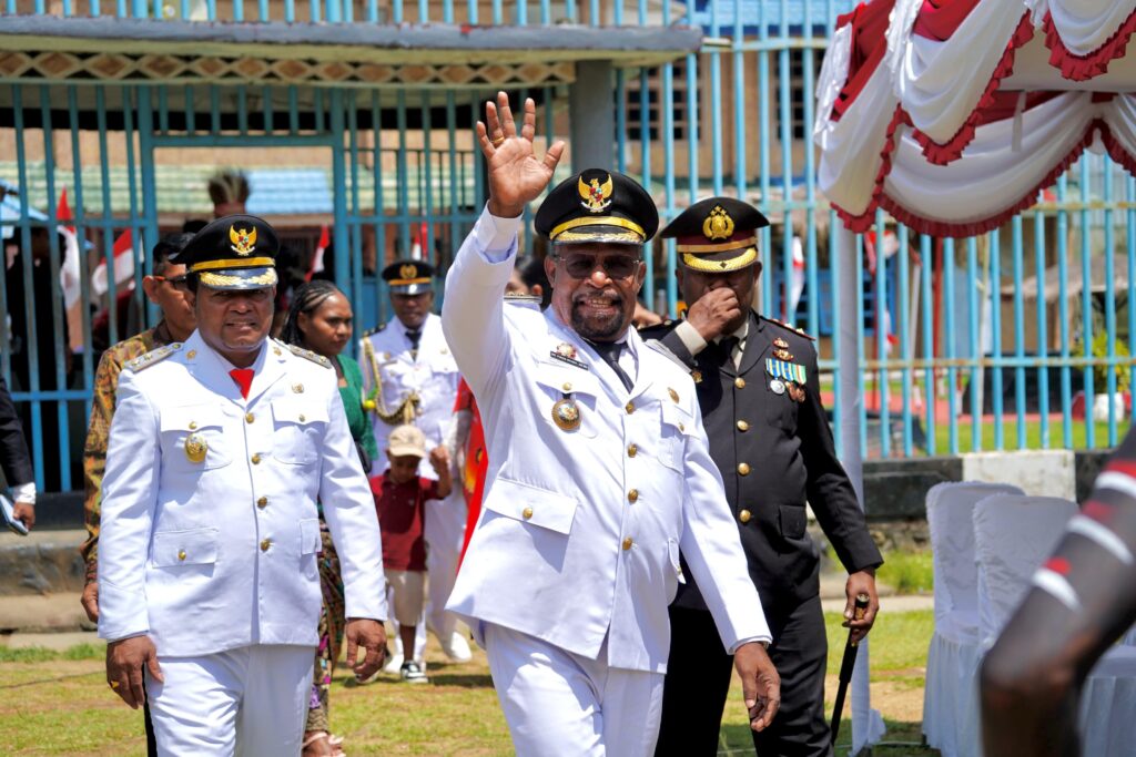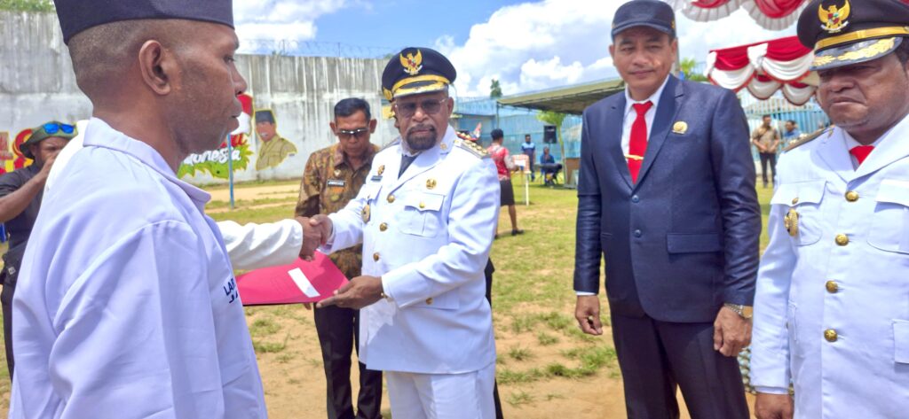 SENTANI, jayapurakab.go.id – Lembaga Pemasyarakatan (Lapas) Narkotika Kelas IIA Doyo, Sentani, menggelar upacara peringatan Hari Ulang Tahun (HUT) ke- 80 Kemerdekaan Republik Indonesia, Minggu (17/8/2025). Upacara tersebut dipimpin langsung oleh Bupati Jayapura, Dr. Yunus Wonda, S.H., M.H., yang bertindak sebagai inspektur upacara.