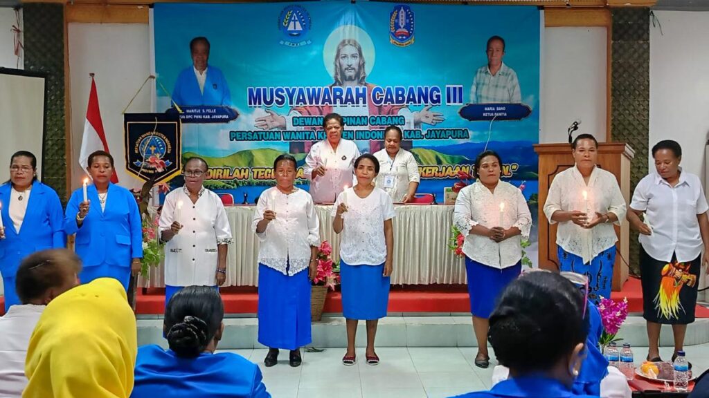 SENTANI, jayapurakab.go.id – Dewan Pimpinan Cabang (DPC) Pengurus Wanita Kristen Indonesia (PWKI) Kabupaten Jayapura, melakukan Musyawarah Cabang (Muscab) III tahun 2024 dalam pemilihan ketua dan pengurus PWKI periode 2024-2029 serta program kerja dan menjalankan perintah yang tertuang dalam AD/ART.