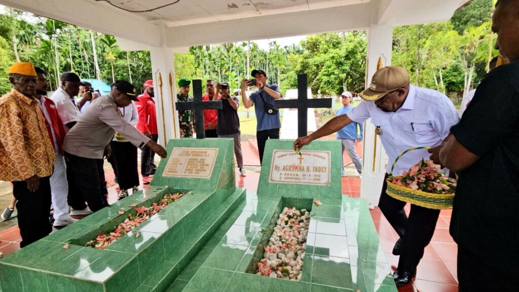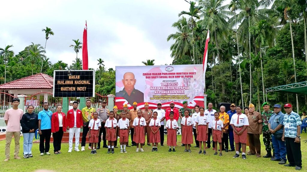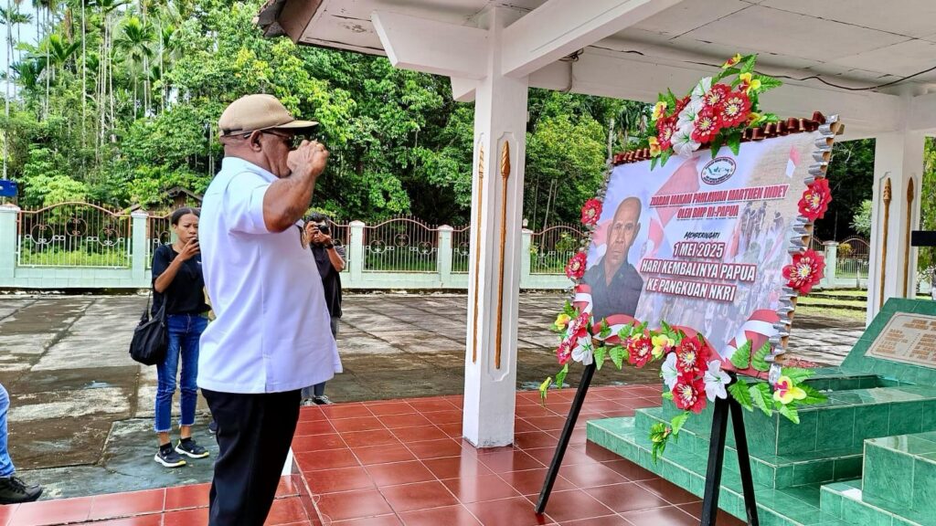 SENTANI, jayapurakab.go.id – Peringatan Hari Kembalinya Papua ke Pangkuan Ibu Pertiwi pada 1 Mei 1963. Dewan Pimpinan Pusat Barisan Merah Putih Republik Indonesia Papua bersama Pemerintah Kabupaten Jayapura melaksanakan upacara ziarah makam pahlawan Marthen Indey, di Kampung Sabron Sari, Distrik Sentani Barat, Kabupaten Jayapura, Rabu, 30 April 2025.
