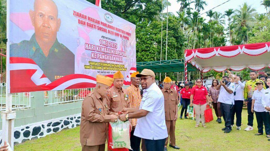 Peringatan Hari Kembalinya Papua ke Pangkuan Ibu Pertiwi pada 1 Mei 1963 dengan melaksanakan upacara ziarah makam pahlawan Marthen Indey dilanjutkan dengan pemberian sembako kepada para Veteran dan masyarakat di Kampung Sabron Sari.