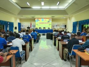 Bupati Jayapura, Dr. Yunus Wonda, SH, MH di damping Wakil Bupati Jayapura, Haris Richard S. Yocku, SH dalam sambutannya saat membuka Musorkablub tersebut berharap, dengan adanya musyawarah olahraga yang digelar saat ini dapat mengembalikan kejayaan olahraga di Bumi Khenambai Umbay ini.