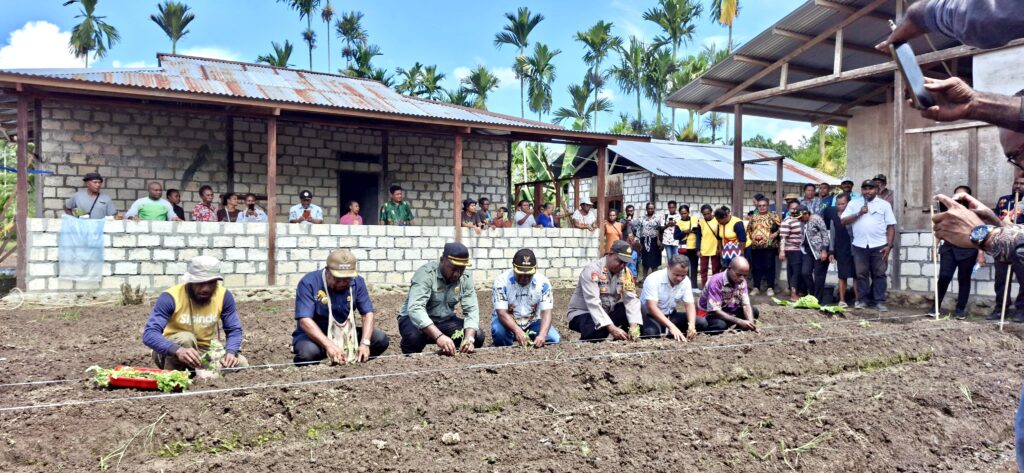 SENTANI, jayapurakab.go.id – Konsen terhadap pertanian, Bupati Jayapura Dr. Yunus Wonda, S.H., M.H., menghadiri Forum Grup Diskusi (FGD) bersama petani petani yang ada di Kabupaten Jayapura, Pembuatan Demo Plot Tanaman Holtikura serta melakukan penanaman tomat di Kampung Waibron, Distrik Sentani Barat, Kamis, 22/05/2025.