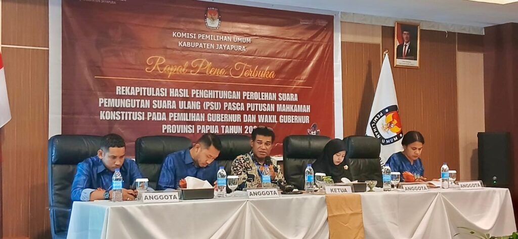 SENTANI, jayapurakab.go.id – Komisi Pemilihan Umum (KPU) Kabupaten Jayapura resmi memulai tahapan rekapitulasi hasil Pemungutan Suara Ulang (PSU) Pemilihan Gubernur dan Wakil Gubernur Papua Tahun 2024. Tahapan ini dilaksanakan pasca putusan Mahkamah Konstitusi (MK) yang memerintahkan pelaksanaan PSU di Papua termasuk Kabupaten Jayapura secara serentak tanggal 6 Agustus 2025.