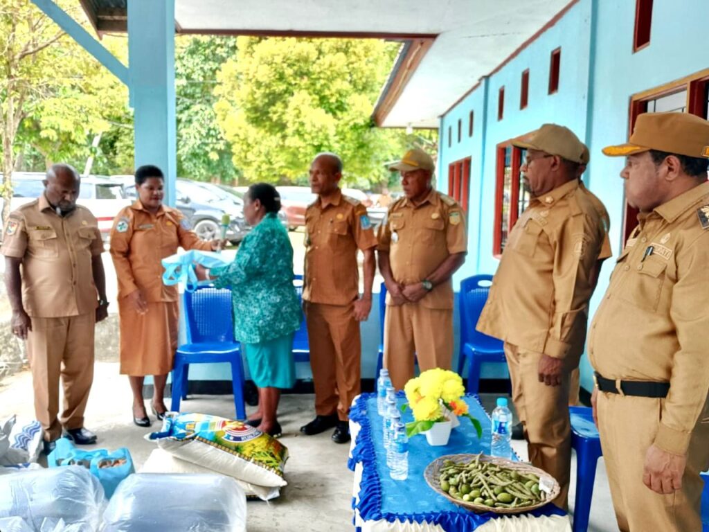 Dalam kunjungan kerjanya, Bupati dan Wakil Bupati juga memberikan bantuan beras kepada masyarakat di kampung-kampung.