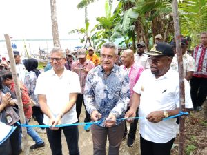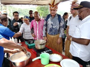 Dalam kunjungannya di Kabupaten Jayapura, Dubes New Zealand bersama rombongan di damping Bupati Jayapura, Dr. Yunus Wonda, SH, MH meresmikan rumah sagu “Holey Narey” sekaligus mengikuti Festival Sagu Yosiba di Kampung Babrongko, Distrik Ebungfau.