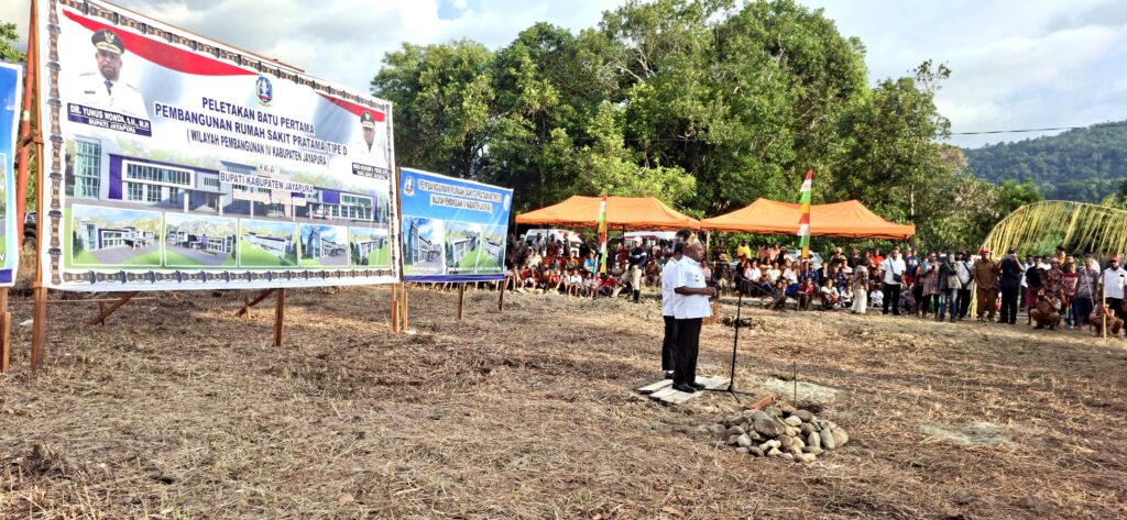 SENTANI, jayapurakab.go.id – Bupati dan Wakil Bupati Jayapura, Dr. Yunus Wonda, S.H., M.H, dan Haris Ricard Yocku, S.H., melakukan peletakan batu pertama pembangunan Rumah Sakit tipe D Pratama di wilayah pembangunan IV Kabupaten Jayapura, Kampung Nimbotong, Distrik Unurumguay, Rabu, 28/05/2025.