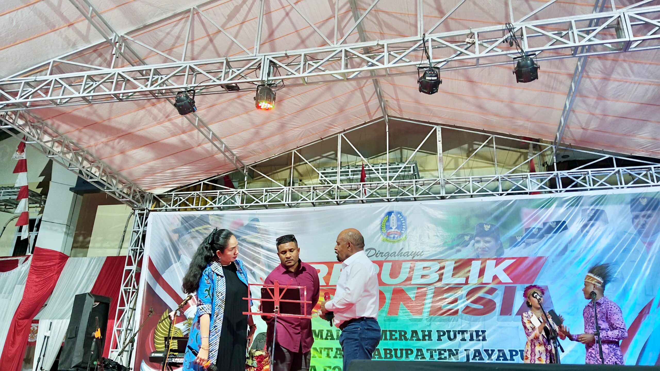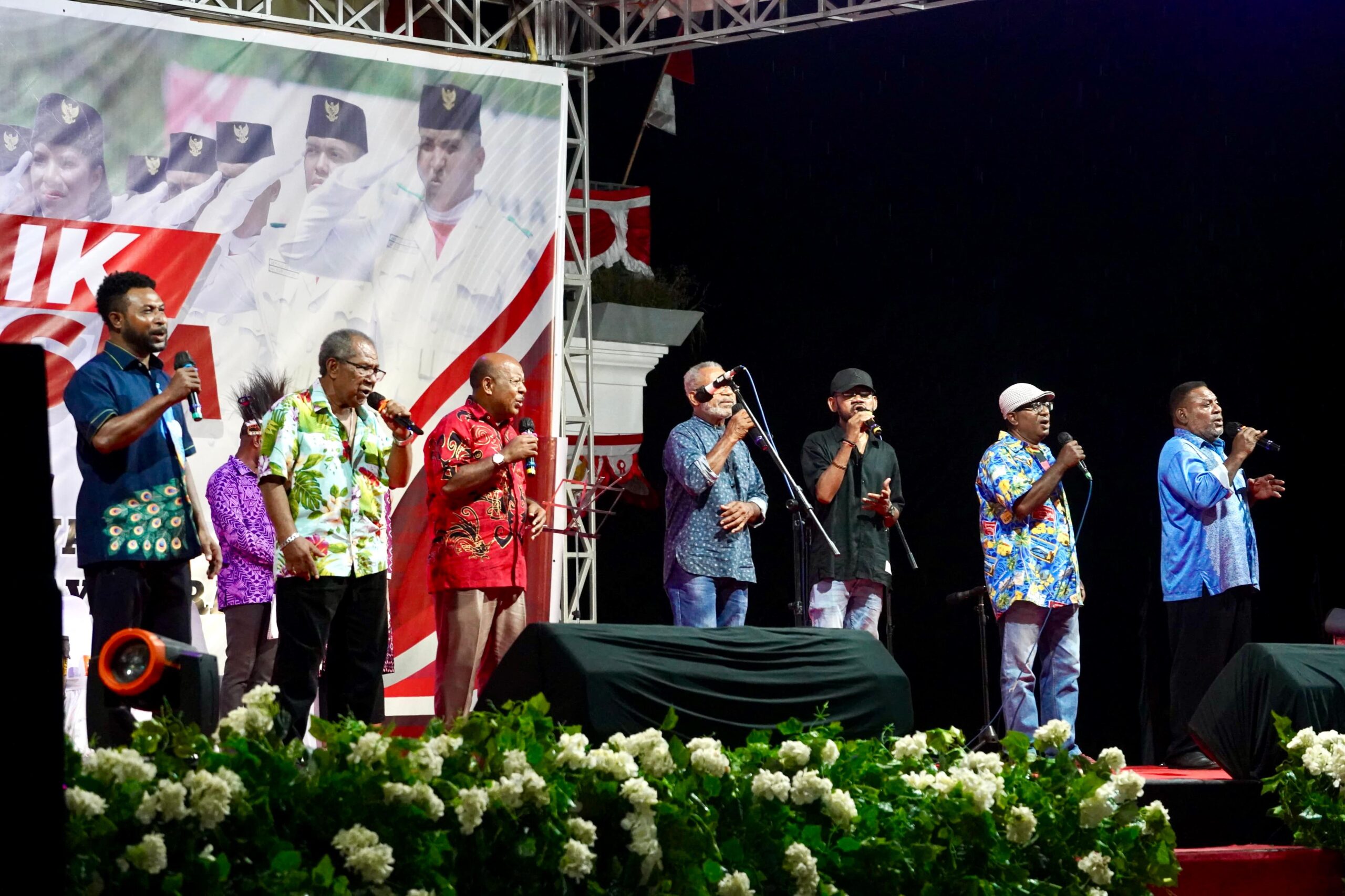 Acara Malam Merah Putih dalam rangka Memperingati HUT RI ke- 80 tahun 2025 ini, diramaikan oleh penyanyi-penyanyi asal Papua diantaranya, Edgar Aronggear, Anafre Singer’s, Oyandi Voice, serta Novel Lagomo.