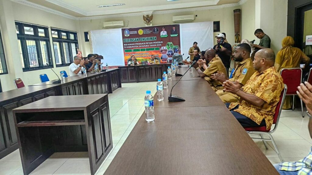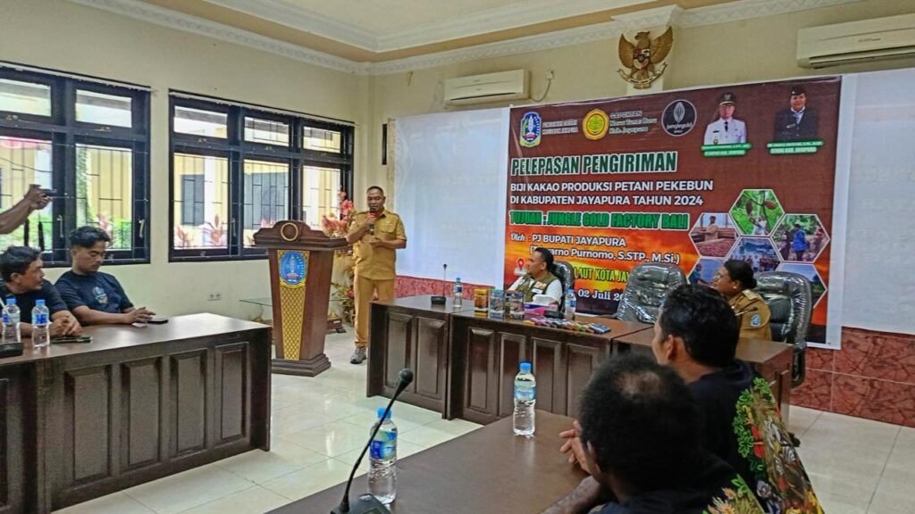 SENTANI, jayapurakab.go.id – Pemerintah Kabupaten Jayapura lepas 4 ton biji kakao ke Bali oleh Penjabat (Pj) Bupati Jayapura, Triwarno Purnomo, S.STP., M.Si di aula I Kantor Bupati Jayapura, Selasa, 02/07/2024.