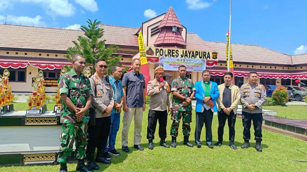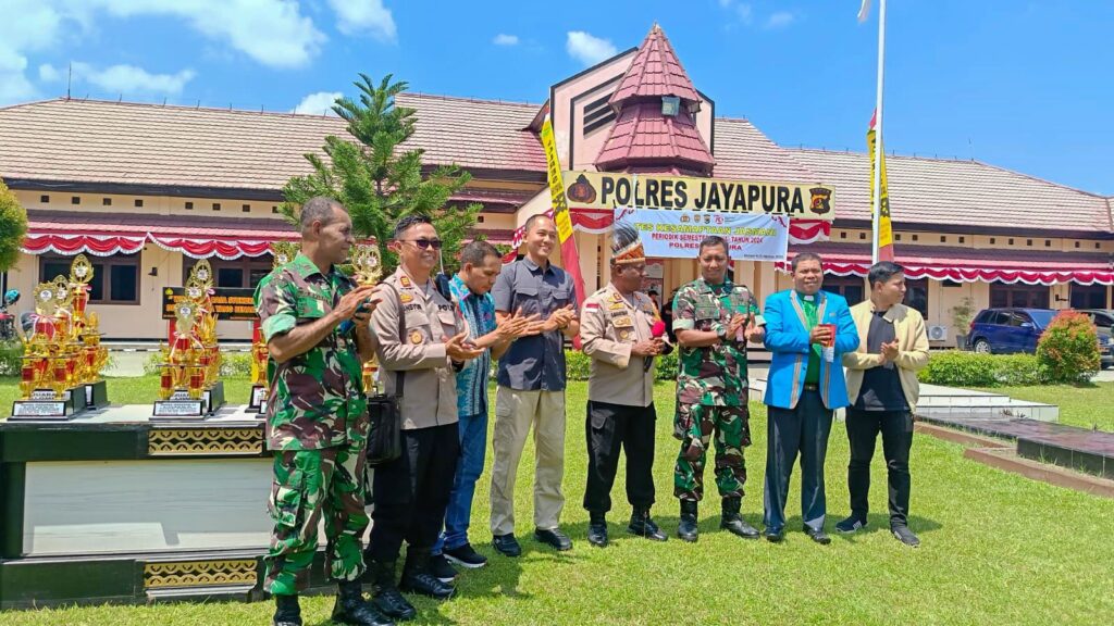 SENTANI, jayapurakab.go.id – Dalam rangka memperingati HUT Kemerdekaan RI ke- 79 tahun 2024, Alumni SMP Negeri 1 Sentani Angkatan 94 didukung Polda Papua dan Polres Jayapura menggelar lomba tari Yosim Pancar (Yospan) di Lapangan Apel Mapolres Jayapura, Sabtu, 10/08/2024.