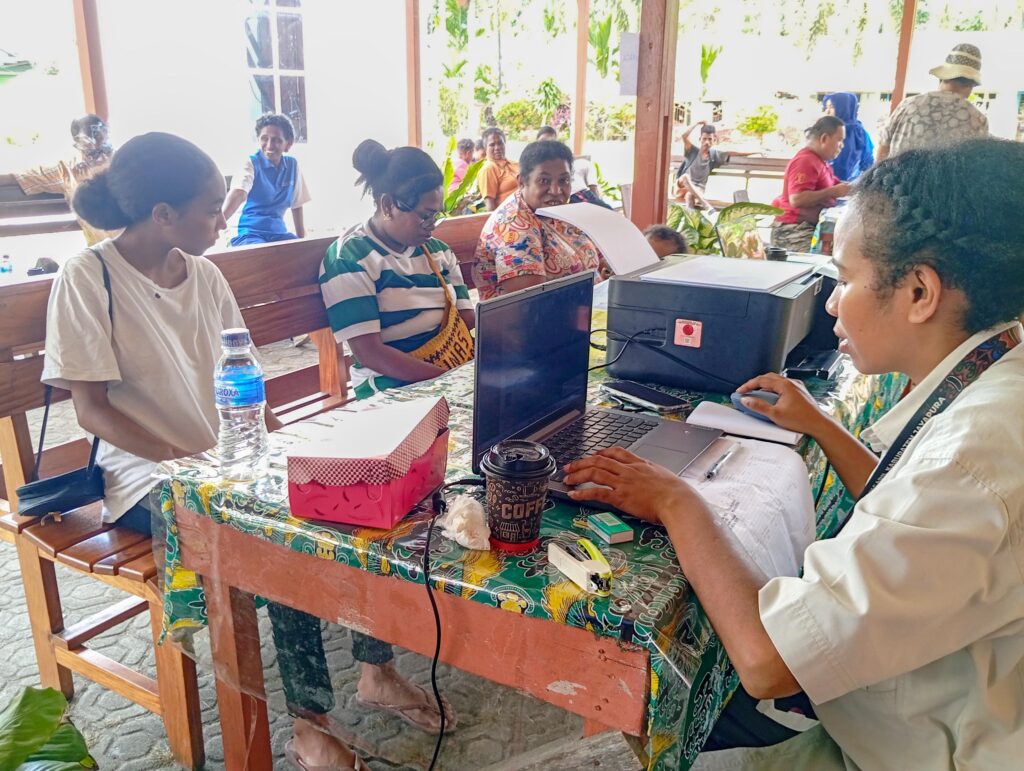 SENTANI, jayapurakab.go.id – Dinas Kependudukan dan Pencatatan Sipil Kabupaten Jayapura buka layanan rekam dan cetak KTP-el dan dokumen kependudukan lainnya, dalam rangka menyongsong HUT GKI di Tanah Papua yang ke 68 Tahun, di Jemaat Maranatha Kampung Harapan, Jumat (25/10/2024).