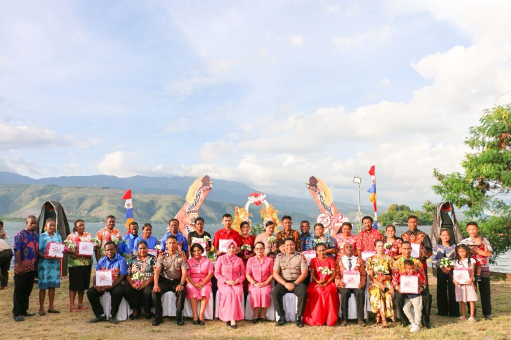 Pernikahan massal diselenggarakan Polres Jayapura, di ruang terbuka dengan pemandangan Danau Sentani dan Gunung Cycloop menjadi latar belakangnya.