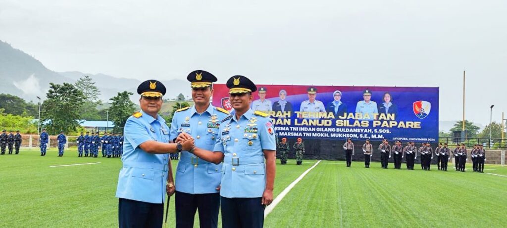 Pergantian Jabatan Komandan TNI Angkatan Udara (Lanud) Silas Papare dilakukan dalam suatu Upacara Militer dilapangan Rugby di Kawasan Lanud Silas Papare Jayapura, Sabtu, 02/11/2024.