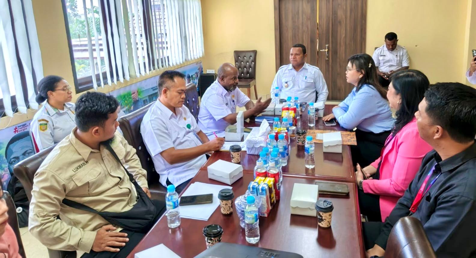 Wakil Bupati Jayapura, Haris Richard S. Yocku, S.H., saat pertemuan dengan Bank BTN, Dinas Lingkungan Hidup (DLH) Kabupaten Jayapura, dan Bank Sampah Kenambai Umbai, di Ruang Rapat Wakil Bupati. Rabu (21/01/2026)