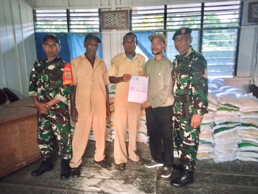 Penyerahan bantuan 8 ton beras tersebut diterima langsung oleh warga setempat, berlangsung di Halaman Kantor Distrik Airu dengan peruntukan masing-masing 2 ton diberikan kepada TNI/Polri, Guru, Nekes, Tokoh adat, Agama. Sedangkan 6 ton beras diberikan kepada 6 kampung yaitu, Muara Nawa, Naira, Hulu Atas, Pagai, Aurina, Kamikaro, di mana setiap kampung menerima 1 ton beras dan gula 250 kilogram.
