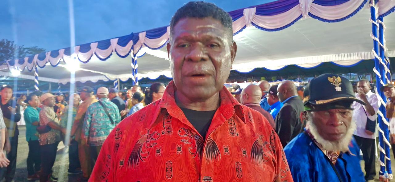 Ondofolo Kampung Putali, Nulce Monim saat diwawancara di Lapangan Apel Gunung Merah Sentani. Selasa (17/03/2026)