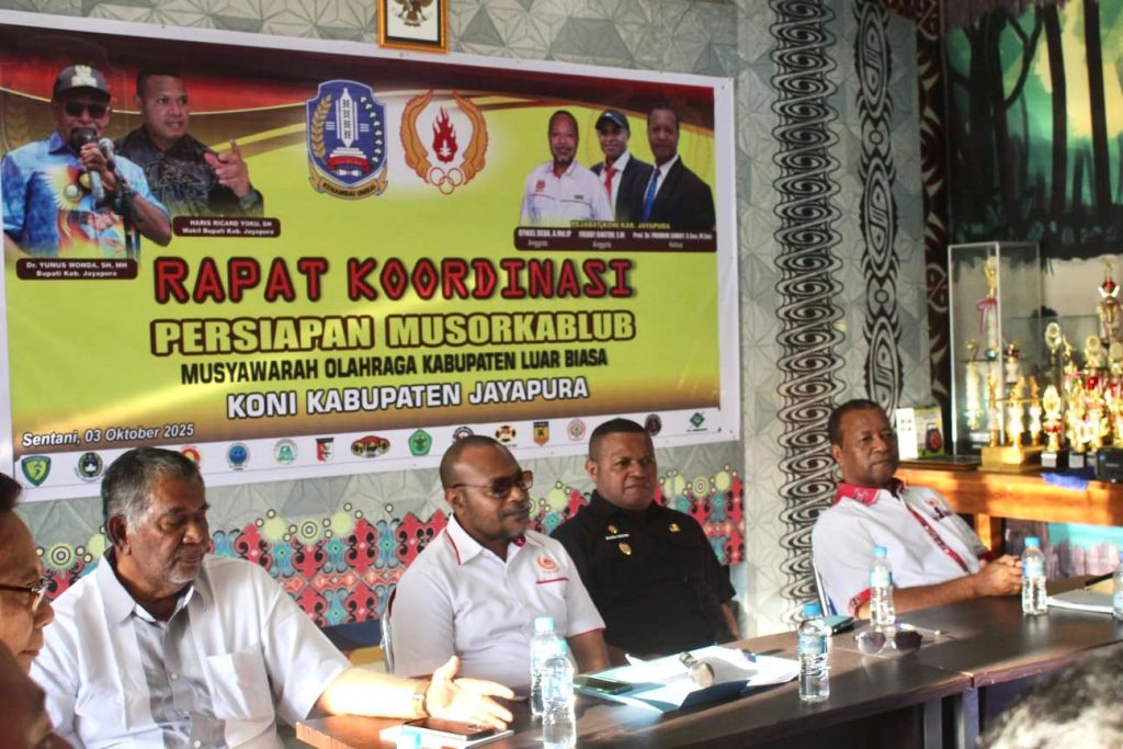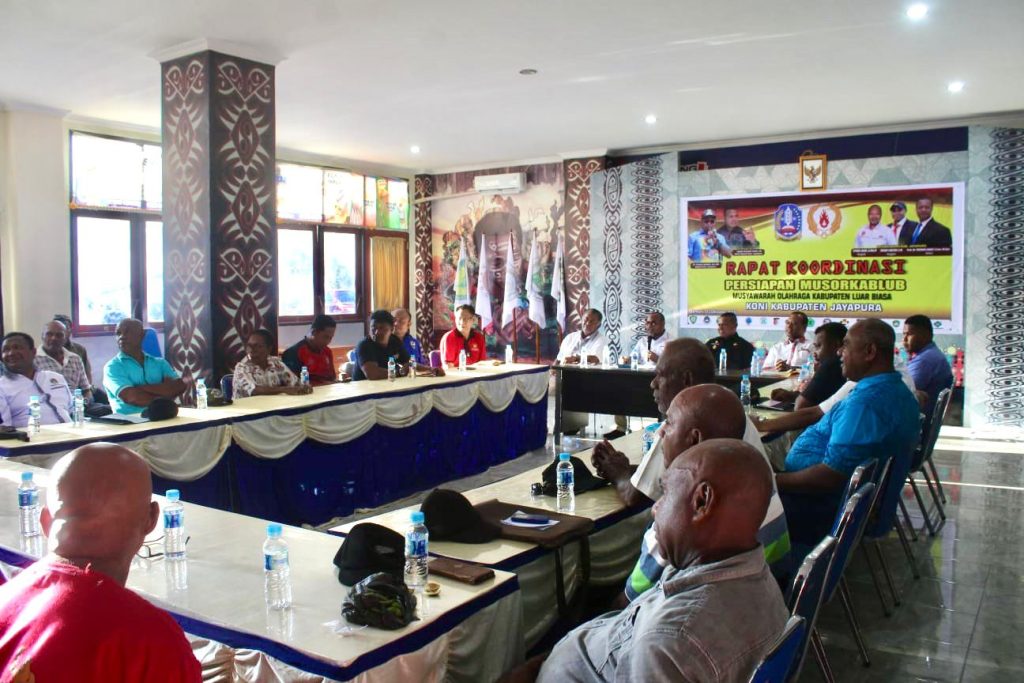 Rakor tersebut dipimpin Pelaksana Tugas (Plt) Ketua KONI Kabupaten Jayapura, Fredrick Sokoy, didampingi dua anggota KONI lainnya yang merupakan perwakilan dari KONI Provinsi Papua. Dalam rapat tersebut, seluruh pengurus cabang olahraga (cabor) dan pengurus KONI lama menyepakati pelaksanaan Musorkablub akan digelar pada 17 Oktober 2025.