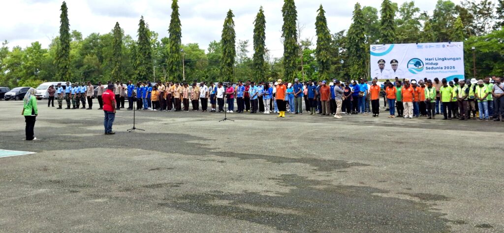 Sambutan Bupati Jayapurua, Dr. Yunus Wonda yang dibacakan Asisten III, Bidang Administrasi Umum Setda Kabupaten Jayapura Derek Timothius Wouw mengatakan peringatan HLHS Tingkat Kabupaten Jayapura Tahun 2025 mengangkat tema global “Ending Plastic Pollution” atau “Hentikan Polusi Plastik”, yang ditetapkan oleh United Nations Environment Programme (UNEP).