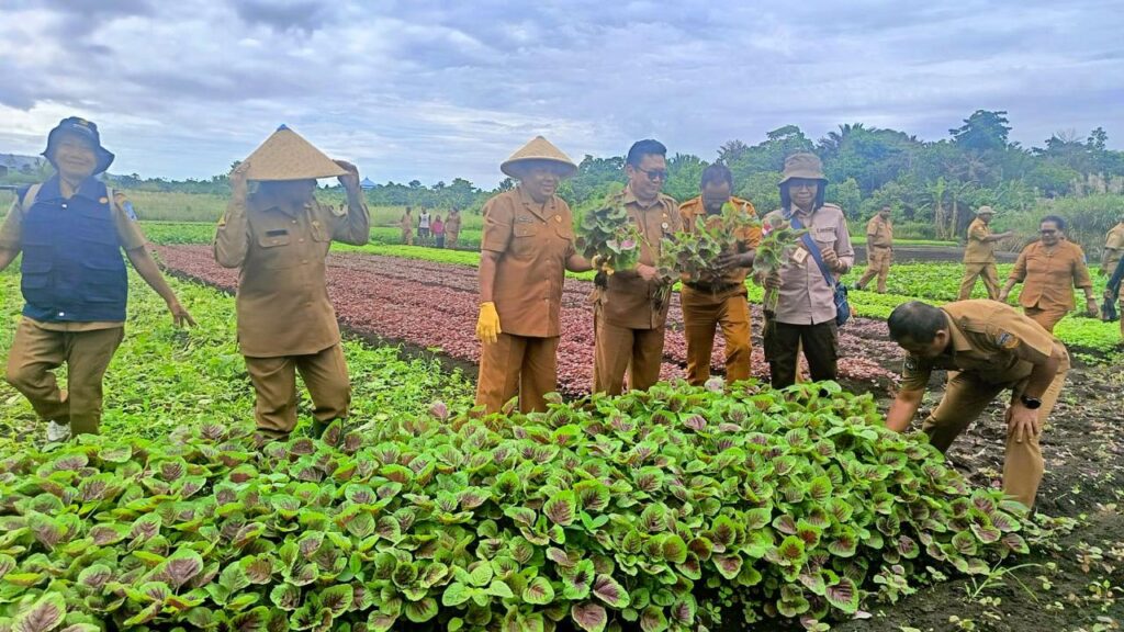 Asisten II Setda Provinsi Papua Setyo Wahyudi, Kepala Dinas Pertanian Papua, didampingi Sekretaris Daerah (Sekda) Kabupaten Jayapura, Hana S. Hikoyabi bersama jajaran melakukan panen sayur dan cabai