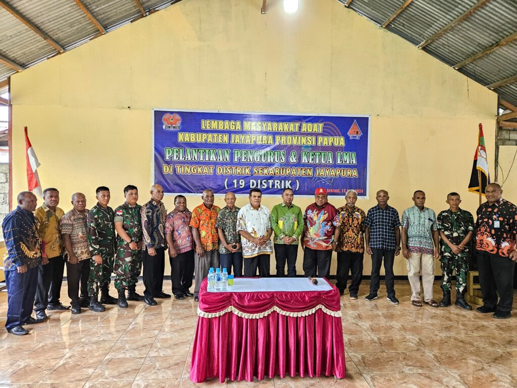 SENTANI, jayapurakab.go.id – Penjabat (Pj) Bupati Jayapura, Triwarno Purnomo, S.STP., M.Si menghadiri pelantikan pengurus ketua Lembaga Masyarakat Adat (LMA) tingkat distrik Se- Kabupaten Jayapura di Obhe Ketua LMA Kabupaten Jayapura, Frits Maurits Felle, S.H., Kamis (13/6/2024).
