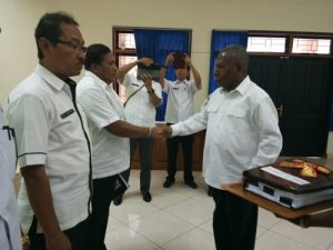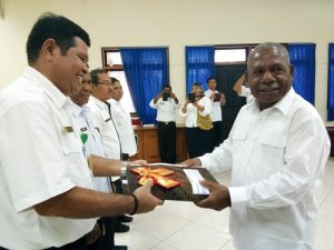 Sentani, Jpr – Bupati Jayapura, Mathius Awoitauw, SE., M.Si bersama denga Wakil Bupati Jayapura, Giri Wijayantoro didampingi Sekretaris Daerah Kabupaten Jayapura, Drs. Yerry F Dien, M.Si dan Wakil Ketua DPRD kabupaten Jayapura, menyerahkan Dokumen Pelaksanaan Anggaran Organisasi Perangkat Daerah (DPA-OPD) Kabupaten Jayapura Tahun 2018.