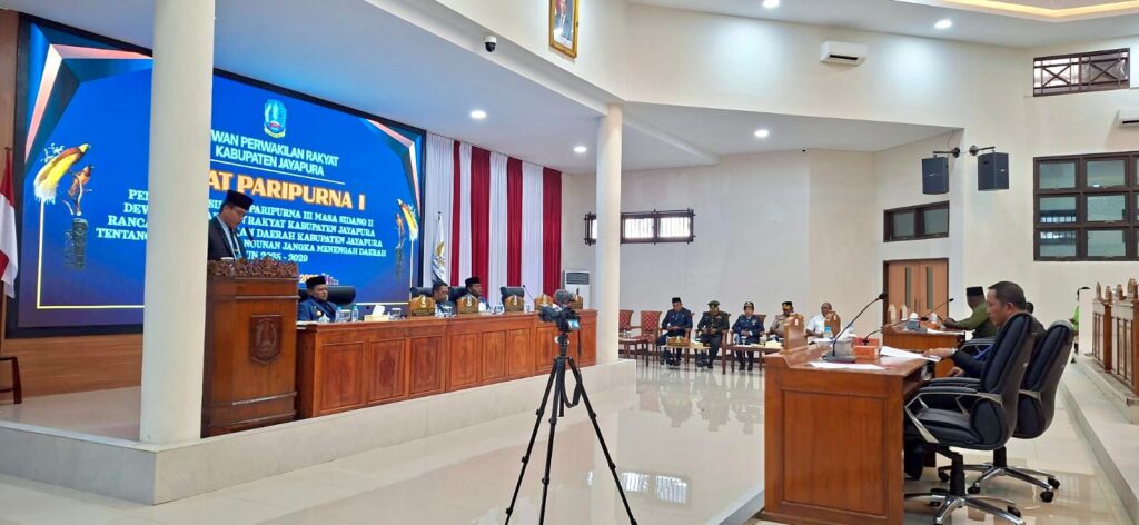 SENTANI, jayapurakab.go.id – Dewan Perwakilan Rakyat (DPR) Kabupaten Jayapura menggelar Rapat Paripurna I Pembukaan Sidang Paripurna III Masa Sidang II dengan agenda Penyerahan Materi Rancangan Peraturan Daerah (Raperda) tentang Rencana Pembangunan Jangka Menengah Daerah (RPJMD) Kabupaten Jayapura Tahun 2025 – 2029.