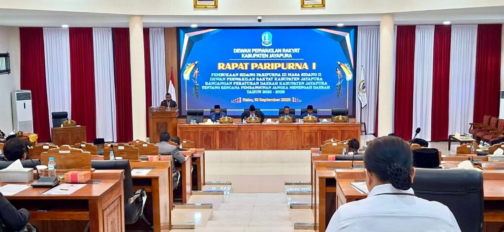 Rapat Paripurna dibuka langsung oleh Ketua DPR Kabupaten Jayapura, Ruddy Bukanaung, S.E., berlangsung di Gedung DPRK Jayapura, Rabu, 10 September 2025.