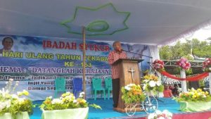 Bupati Jayapura, Mathius Awoitauw, SE., M.Si, dalam sambutannya pada perayaan tersebut menyampaikan bahwa Keberagaman yang kita miliki dalam kesatuan NKRI benar-benar kita perkokoh dan kita terus berbicara, karena gereja mempersatukan kita untuk itu.