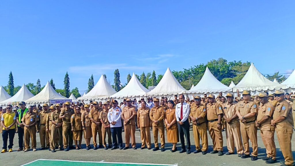 SENTANI, jayapurakab.go.id – Penjabat (Pj) Bupati Jayapura, Ir. Semuel Siriwa, M.Si pimpin apel peringatan Hari Kesaktian Pancasila Tahun 2024 yang berlangsung di Lapangan Apel Kantor Bupati Jayapura, Selasa, 1/10/2024.